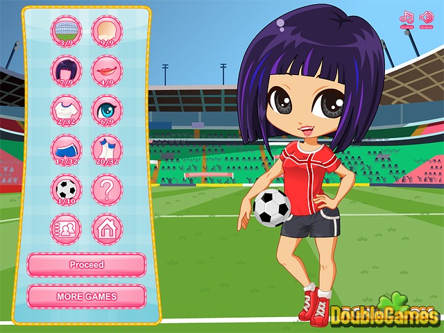 Igrajte našo novo očarljivo spletno modno igro »Girls Go Soccer«. Očitno je, da nima vsako dekle rado nogometa in če ga kdaj začnejo igrati, bodo verjetno zaskrbljene o njihovem stilu in kako izgledajo na igrišču. Poskusite izbrati najbolj moden stil za vaše igralce. Izberite najbolj stilsko frizuro, kratke hlače, majico in športne copate. Izberete lahko tudi najustreznejšo žogo za vaš dovršen izgled. Če gledate na vaš izgled kot na idealen, ga lahko kasneje uporabite kot vaša avatar. Ne zamudite priložnosti za takojšen začetek igranja »Girls Go Soccer«.